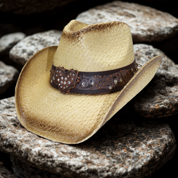 Material: Woven Toyo; Faux Leather w. Heart Buckle & Studs