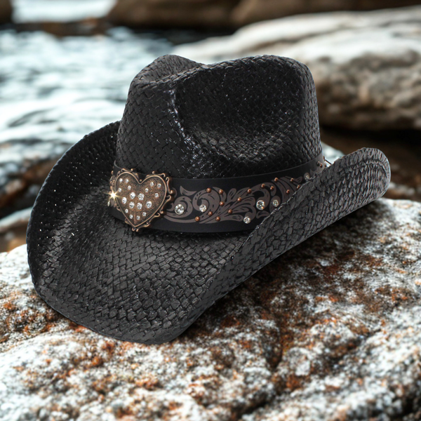 Material: Woven Toyo; Faux Leather w. Heart Buckle & Studs